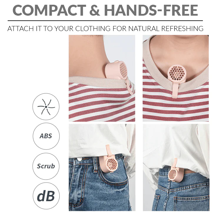 Beat the summer heat with our wearable mini fan, a revolutionary hands-free cooling device designed for your ultimate comfort. This compact fan can be easily attached to your clothing, providing a refreshing breeze that can lower your body temperature by up to 6° in just 2 minutes.